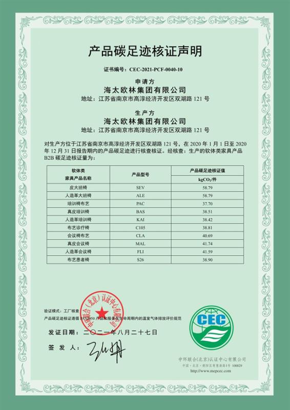 下一篇:海太歐林集團有限公司-產品碳足跡證書-CEC-2021-PCF-0040-9-軟體類家具