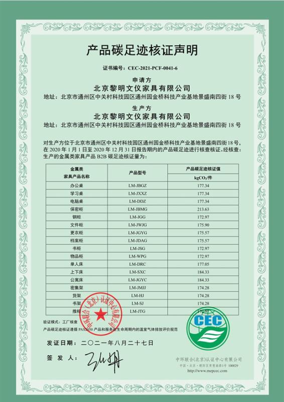 下一篇:北京黎明文儀家具有限公司-產(chǎn)品碳足跡證書-CEC-2021-PCF-0041-5-軟體類家具