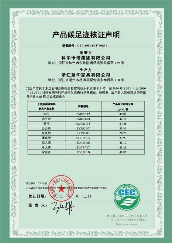 下一篇:浙江榮華家具有限公司碳足跡核證聲明-CEC-2021-PCF-0045-5-人造板類涂飾類家具