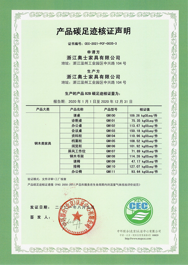 上一篇:浙江奧士家具有限公司-2021-PCF-0035-4-鋼木類家具+金屬類家具+綜合類家具