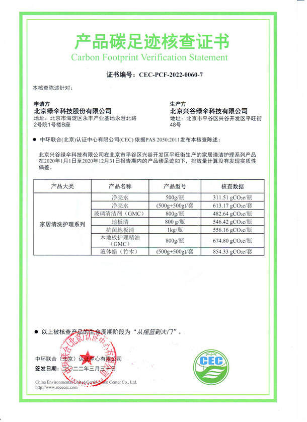 下一篇:北京興谷綠傘科技有限公司-CEC-PCF-2022-0060-6-廚房清潔系列