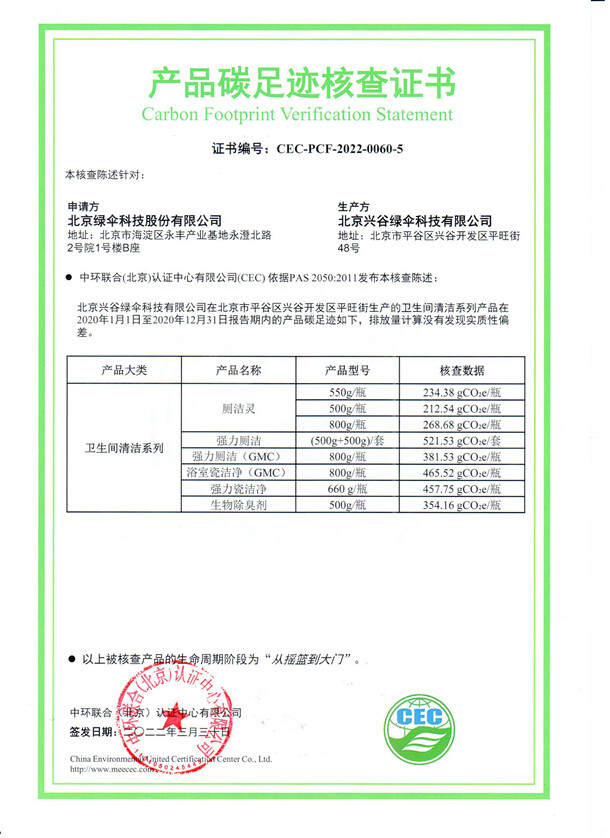 上一篇:北京興谷綠傘科技有限公司-CEC-PCF-2022-0060-6-廚房清潔系列