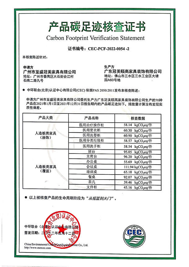 下一篇:廣東冠美頤高家具裝飾有限公司-CEC-PCF-2022-0054-1-人造板類(lèi)家具(涂飾)
