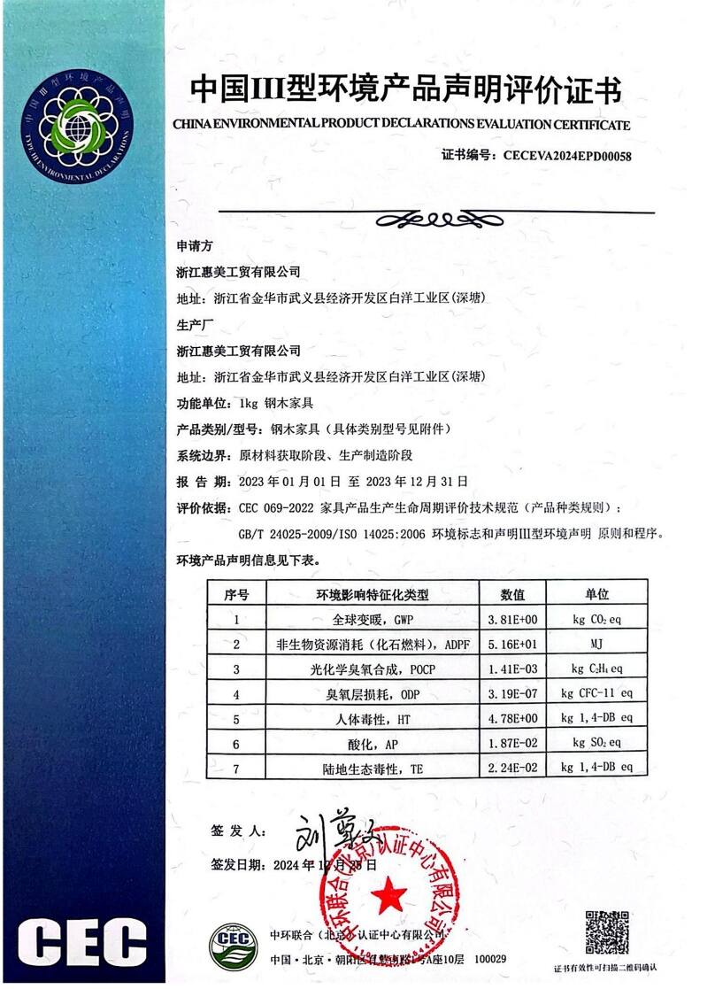 浙江惠美工貿有限公司-CECEVA2024EPD00058