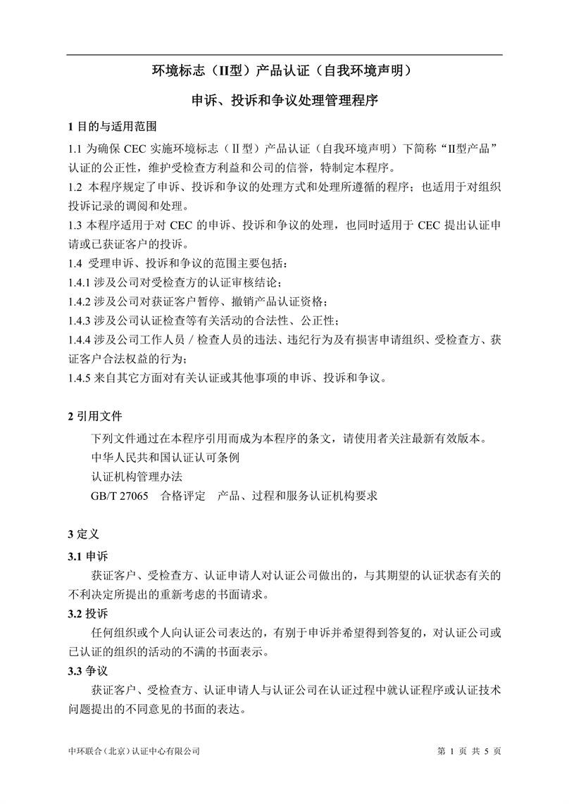 環(huán)境標(biāo)志(Ⅱ型)產(chǎn)品認(rèn)證(自我環(huán)境聲明)申訴、投訴和爭議管理程序-2024-7-1.pdf
