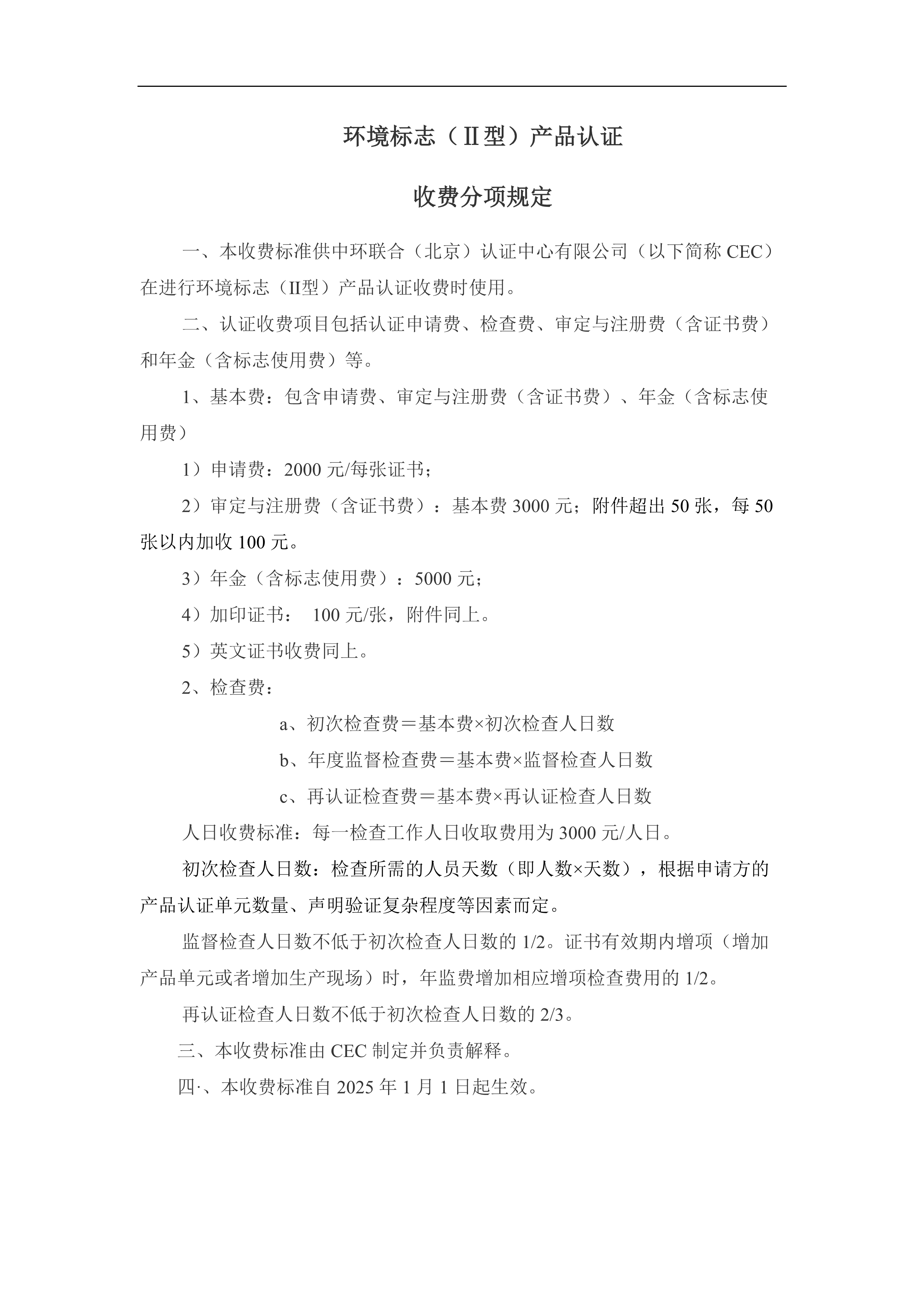 環(huán)境標志(II型)產(chǎn)品認證收費規(guī)定-2025-1-1.pdf