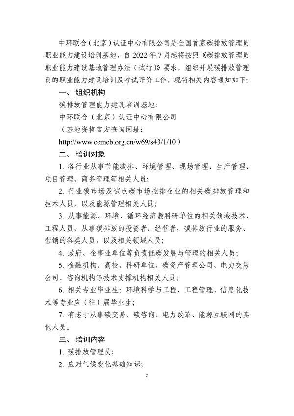 關(guān)于碳排放管理員職業(yè)能力建設(shè)培訓(xùn)及能力水平評價通知202208