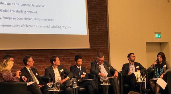 本屆年會的國際研討會以“40年可靠的消費者信息和未來發(fā)展之路”為主題,結(jié)合藍色天使40年的發(fā)展歷程,與會代表共同探討了環(huán)境標(biāo)志的未來發(fā)展。張小丹作為中國環(huán)境標(biāo)志計劃代表,受邀與GEN主席以及北歐、歐盟、日本等環(huán)境標(biāo)志計劃代表一道,共同討論環(huán)境標(biāo)志面臨的機遇和挑戰(zhàn),其提出的加強政府引導(dǎo)作用、促進環(huán)境標(biāo)志機構(gòu)間合作的觀點得到與會代表的一致認(rèn)可。