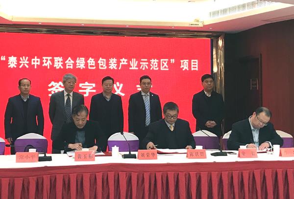 會議期間,在泰興市常務(wù)副市長劉榮華、塑包委黃玉彬副主任和陳軼群副總經(jīng)理及各位與會專家的見證下,中環(huán)聯(lián)合總經(jīng)理助理曹磊與泰興市城區(qū)工業(yè)園區(qū)管委會主任常小平、塑包委秘書長安毅共同簽署“泰興中環(huán)聯(lián)合綠色包裝產(chǎn)業(yè)示范區(qū)”項目合作協(xié)議。