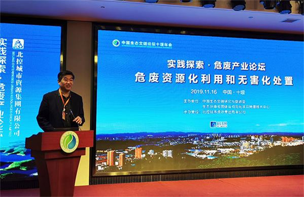 他在發言中回顧了固體廢棄物行業管理歷史,介紹了2018年以來已發布的危險廢物管理相關政策,并結合黨的十九屆四中全會精神中“堅持和完善生態文明制度體系,促進人與自然和諧共生。堅守尊重自然、順應自然、保護自然,健全源頭防止、過程控制、損害賠償、責任追究的生態環境保護體系”的主旨思想,詳細解讀了首次把涉及綠色和生態的經濟與發展活動,歸入生態文明建設制度體系中的深層含義,進一步闡述了推進“無廢城市”建設,對推動固體廢物源頭減量、資源化利用和無害化處理,促進城市綠色發展轉型,提高城市生態環境質量,提升城市宜居水平具有的重要意義。