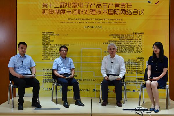 2020年6月5日,中國家用電器研究院聯(lián)合12家國內(nèi)知名高校和權(quán)威科研機構(gòu)、行業(yè)協(xié)會主辦的“第十三屆電器電子產(chǎn)品生產(chǎn)者責(zé)任延伸制度與回收處理技術(shù)國際網(wǎng)絡(luò)會議”在北京成功召開。國家發(fā)展和改革委員會產(chǎn)業(yè)發(fā)展司服務(wù)業(yè)處李際平處長出席本次會議并介紹了《實施方案》出臺的背景和意義,國家工業(yè)和信息化部節(jié)能與綜合利用司綜合利用處王文遠處長介紹了電器電子產(chǎn)品生產(chǎn)者責(zé)任延伸試點的工作進展和下一步工作計劃。雙綠聯(lián)盟出席會議,并和領(lǐng)導(dǎo)及相關(guān)方進行了深入的溝通。
