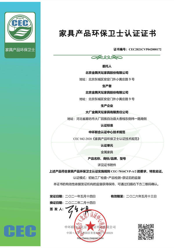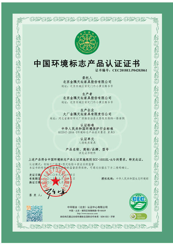 金隅天壇作為中環聯合的認證客戶,致力于建設低碳、環保型企業,其旗下的多個家具產品連續多年獲得環境標志認證證書,部分產品還通過了CEC低VOC家具產品認證和CEC家具產品環保衛士認證。HJ 2547《環境標志產品技術要求 家具》這一環境標志標準及CEC標志自愿性產品認證標準,從產品原材料端開始,對其在生產和使用過程的全生命周期提出綠色要求,督促企業清潔生產,以此保障人體健康,保護生態環境。這些“冬奧專供”的家具從功能和需求出發,研發到生產過程均嚴格按照技術標準執行,實現了產品全生命周期的綠色,為運動員和工作人員提供了舒適、健康的生活環境。此外,多款家具還實現了創新設計,在冬奧閉幕后能夠進行高效轉換實現冬殘奧會的適配使用。這種設計響應了“節儉辦奧運”的號召,也極大體現了中國方案中的環保理念。