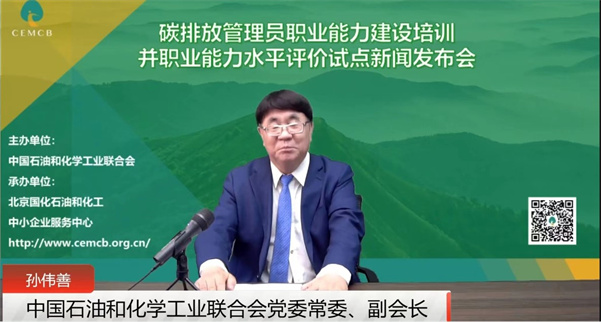 本次新聞發布會由碳排放管理員新職業的發起單位中國石油和化學工業聯合會產業發展部戚志強主任主持,中國石油和化學工業聯合會黨委常委/副會長孫啟善、產業發展部李永亮副主任、國化中心王靜敏主任分別就碳排放管理員職業能力建設培訓和職業能力水平評價要求、碳排放管理員職業功能和工作內容及其應具備的知識和技能、碳排放管理員職業能力建設培訓及試點職業能力水平評價工作情況進行了介紹,3家培訓平臺建設參與單位及4家基地代表參加了發布會。