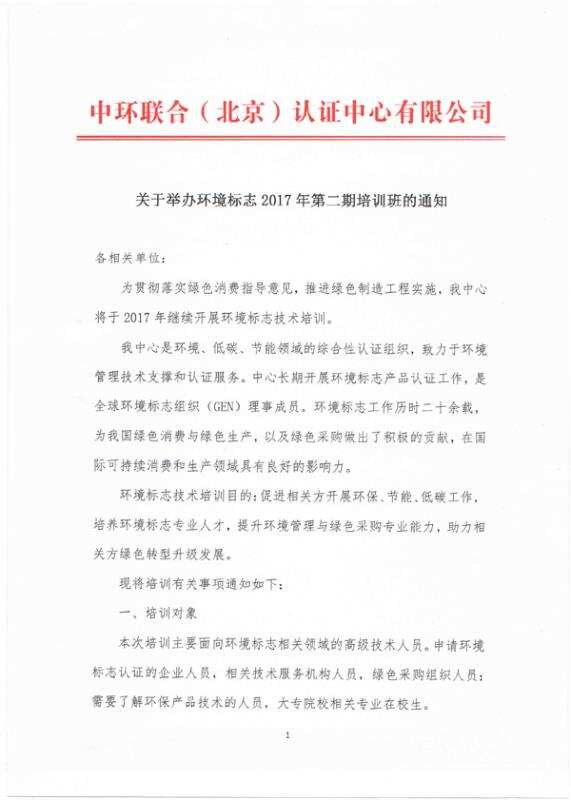 上一篇:關(guān)于舉辦環(huán)境標(biāo)志2017年第一期培訓(xùn)班的通知
