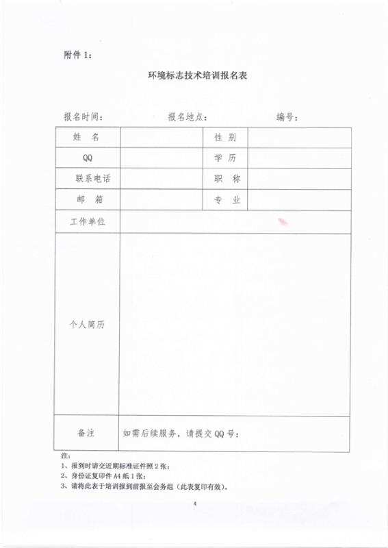 環(huán)境標(biāo)志技術(shù)培訓(xùn)報(bào)名表及匯款信息