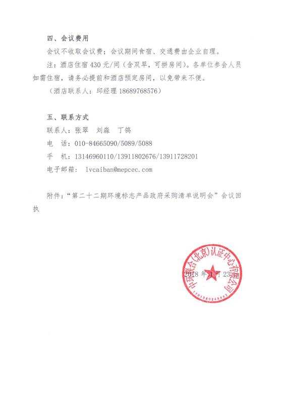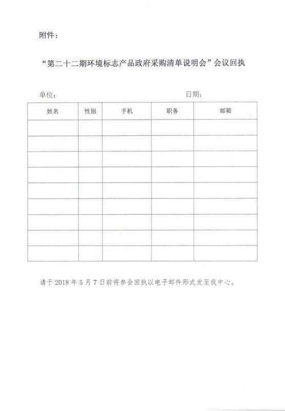 “第二十二期環境標志產品政府采購清單說明會”會議回執
