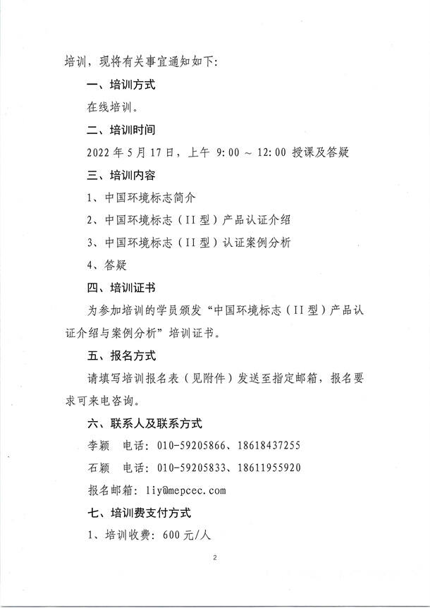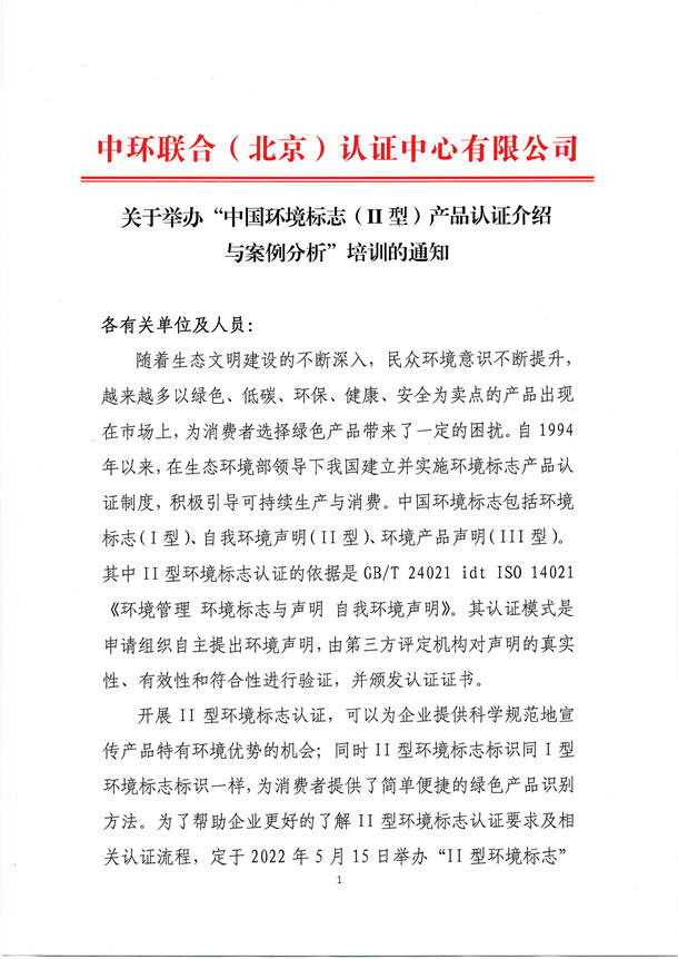 關于舉辦 “中國環境標志 (Ⅱ 型 )產品認證介紹與案例分析” 培訓的通知