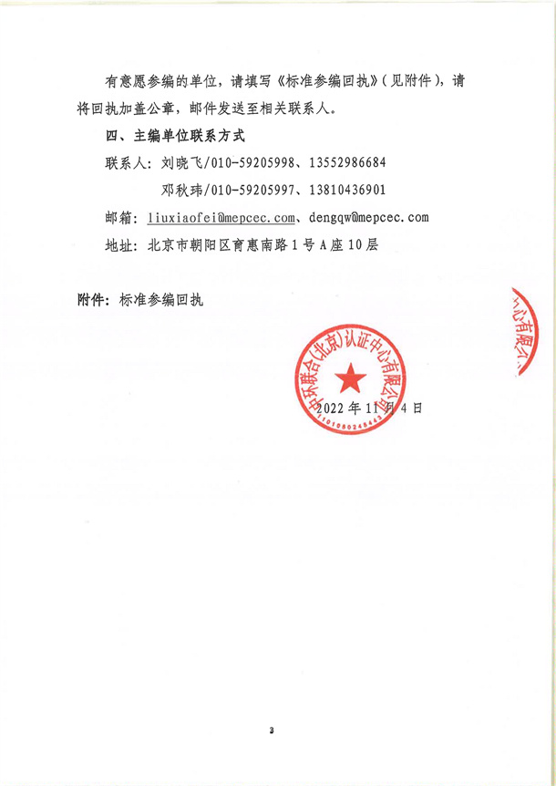 《碳管理體系 要求及使用指南》、《環境產品聲明認證技術導則》和《清潔生產評價認證技術通則》等國家市場監督管理總局認證認可行業標準參編單位邀請函