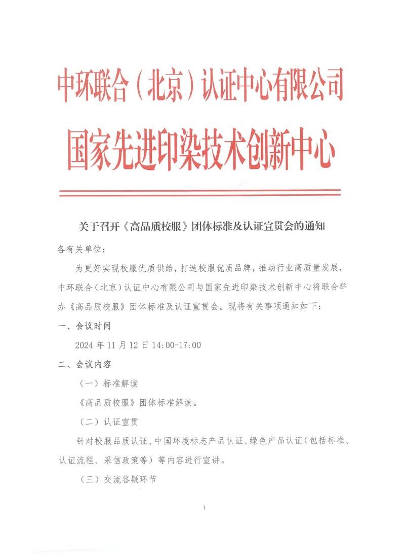 關于召開《高品質校服》團體標準及認證宣貫會的通知