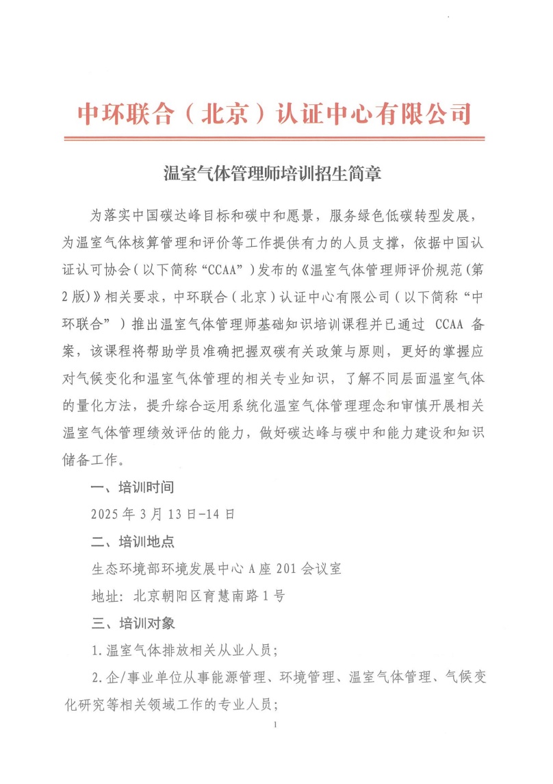 溫室氣體管理師培訓招生簡章